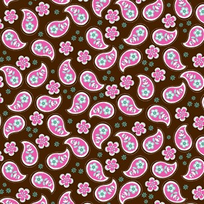 Bár sötét - barna- az alapja, a kis rózsaszín minták ezt a textilt is vidámmá, táncossá varázsolják: